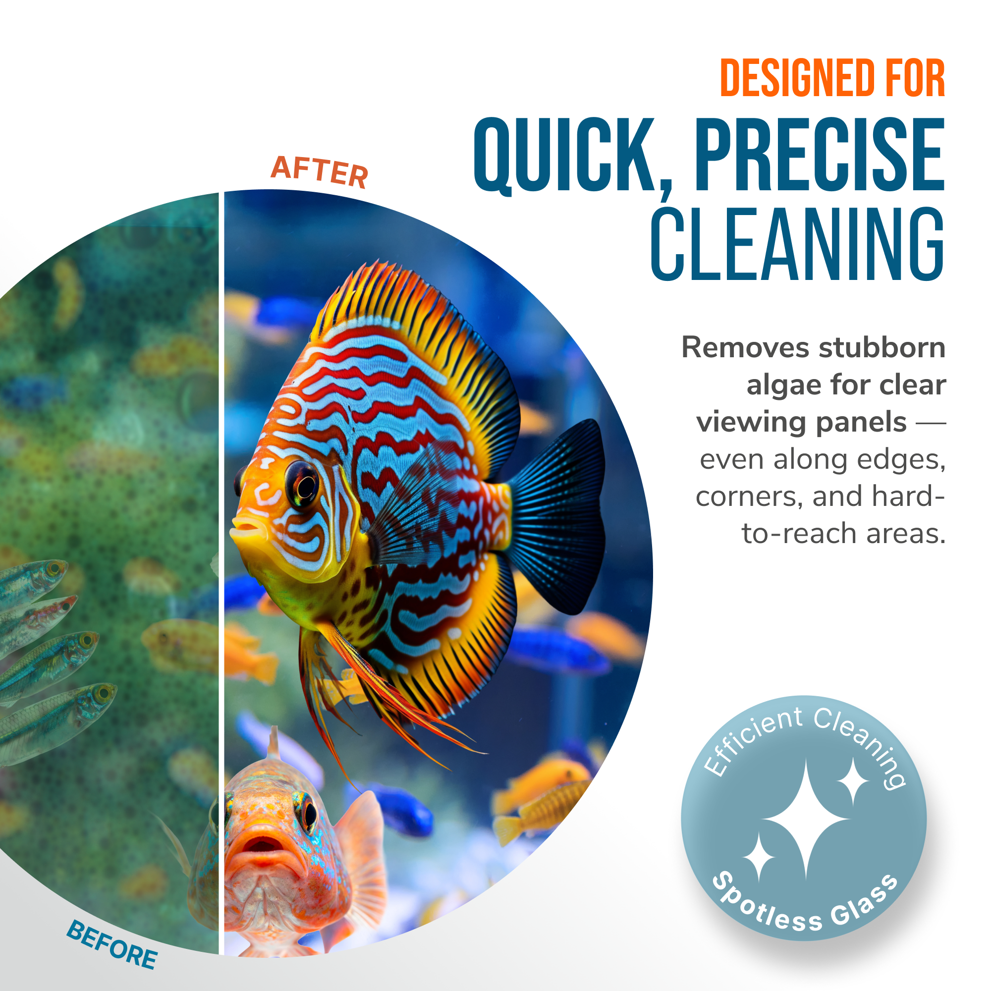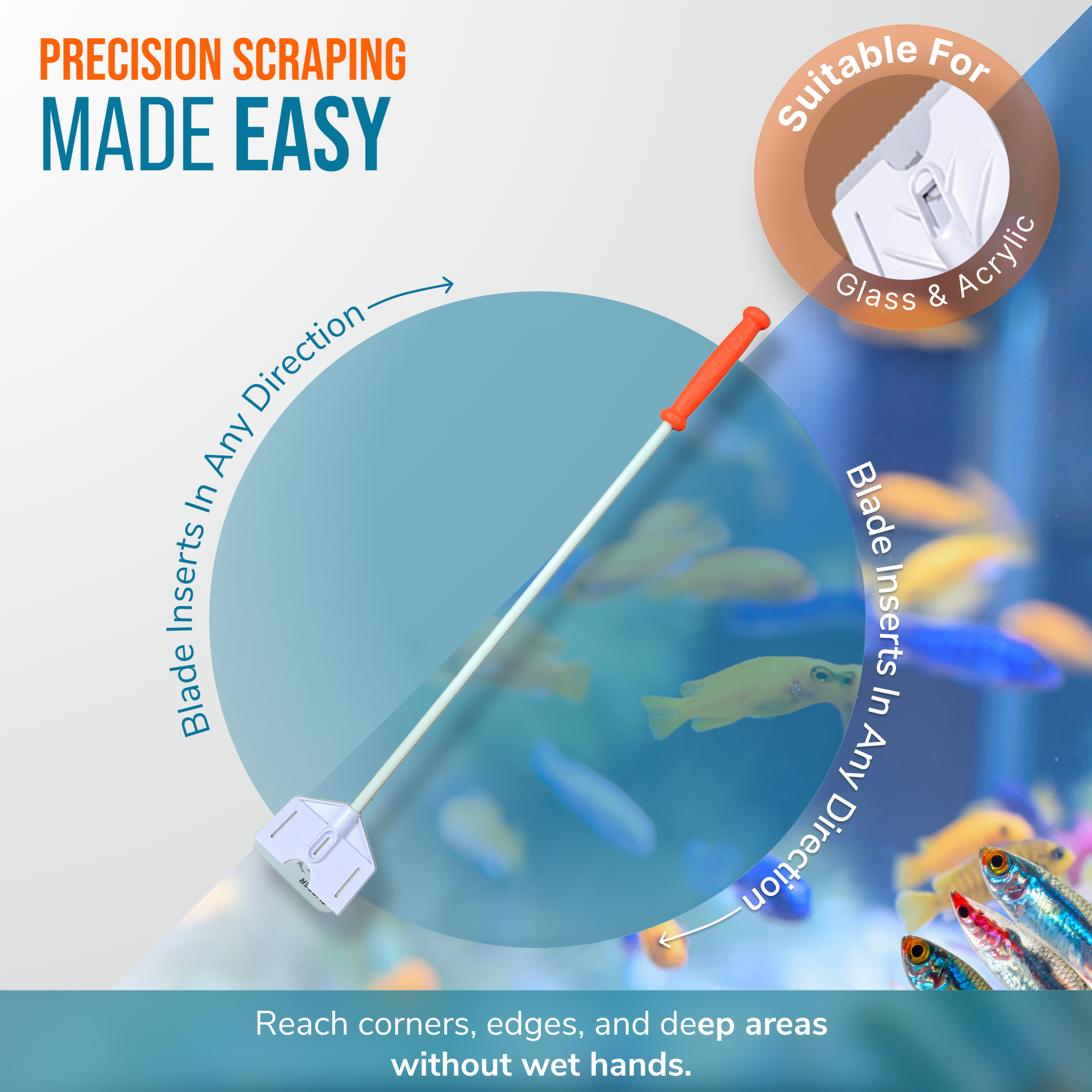 - Optional stainless steel blade (sold separately) is great for tackling really hard algae deposits all over your tank (for glass tanks only).