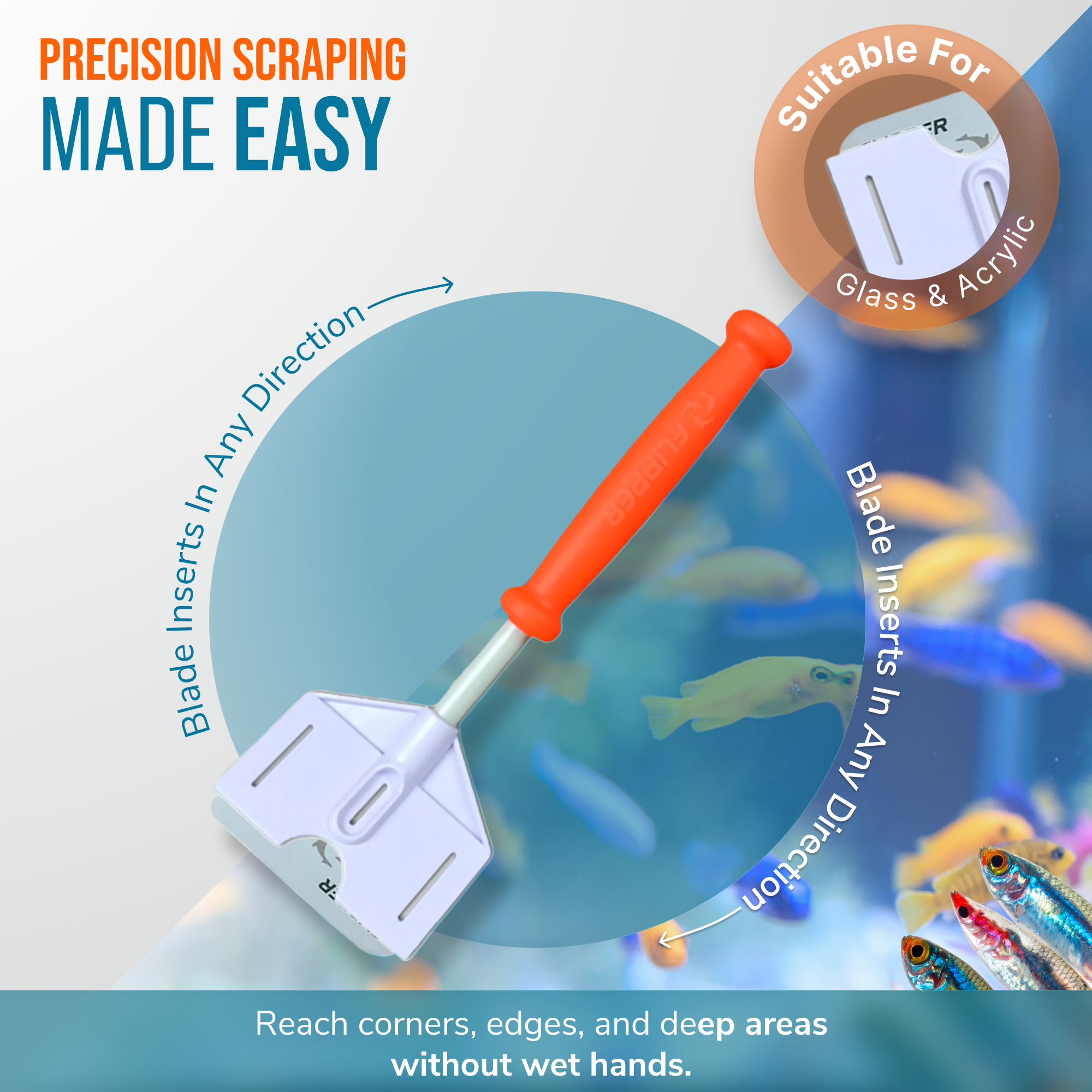- Optional stainless steel blade (sold separately) is great for tackling really hard algae deposits all over your tank (for glass tanks only).